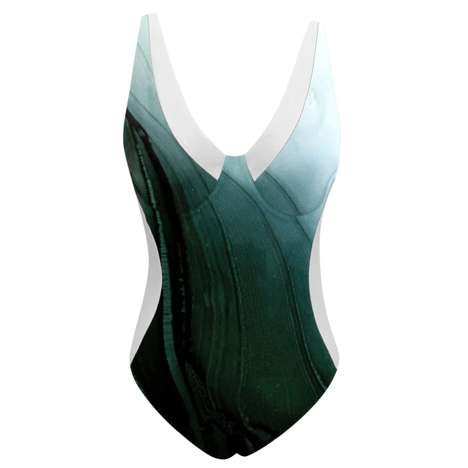 Womens V Neck Flower Printed Swimsuit Bikini Swimwear